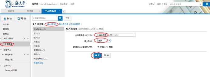 再点击个人通讯录,导入通讯录,选择从快客邮件导出的文件作为导入文件,选择要导入到的组,点击确定后即完成通讯录从快客邮件系统到Coremail邮件系统的迁移。